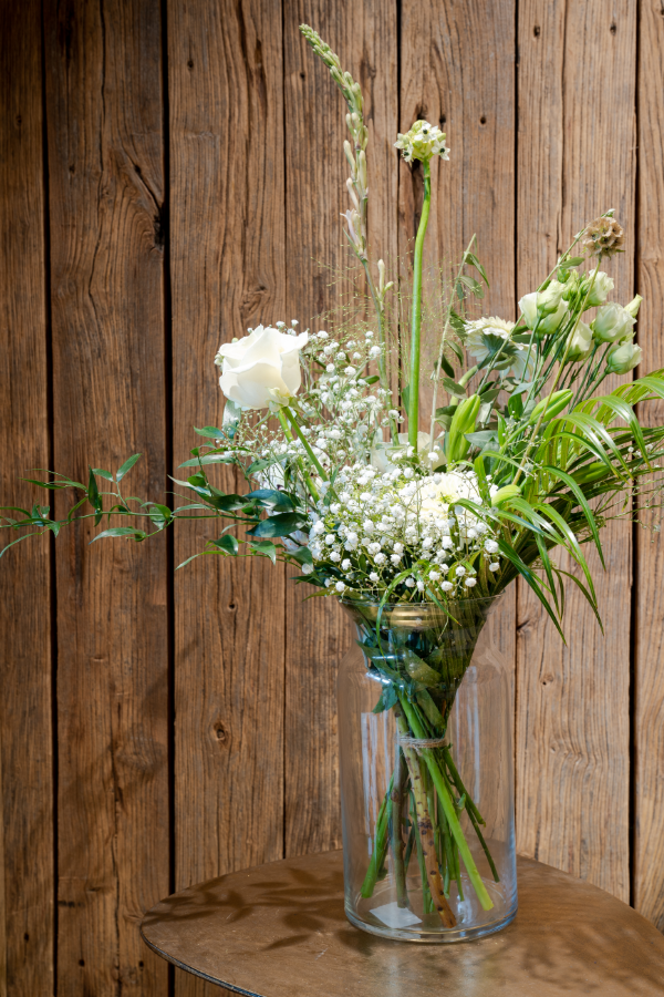 Mooi plukboeket in de witte tinten.